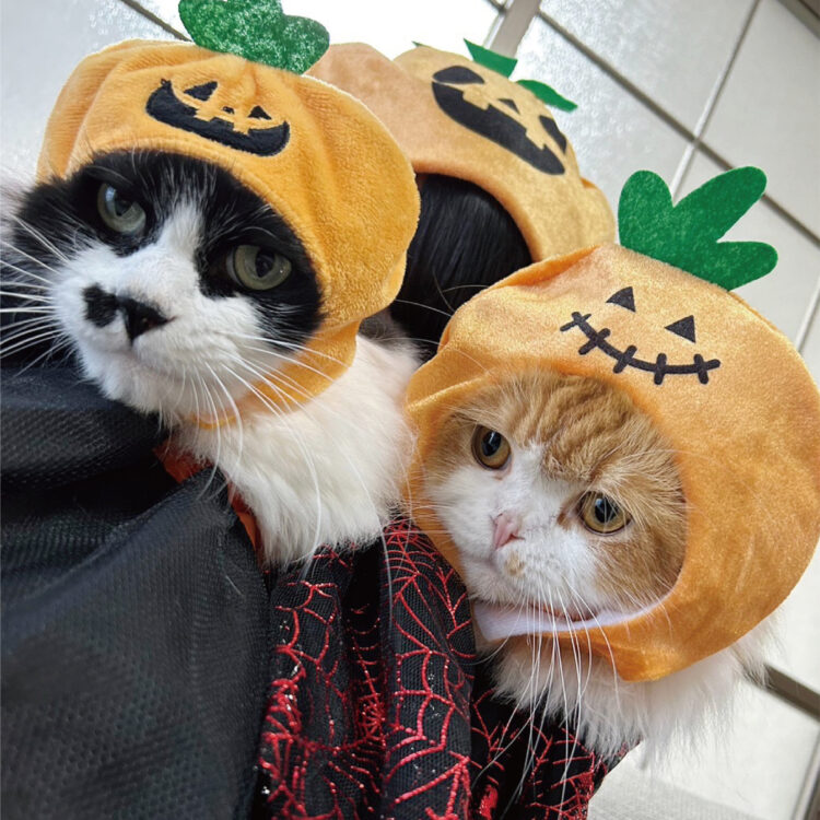 愛猫2匹とは、LINEのアイコン写真のために季節ごとに撮影をしており(笑)、毎回オブジェ等も手作りしてこだわっています。