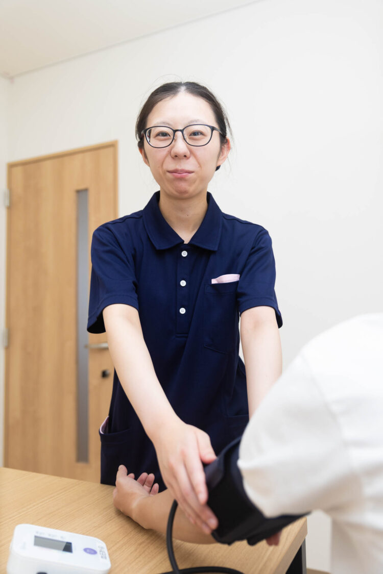基本的にはご利用者様の体調管理やお薬の管理が私のメインの仕事だと思っております。ご利用者様の体調管理を基本業務として行っています。出社のタイミングでバイタルを測ることが多く、先輩看護師スタッフの方が測ってくださることもありますが、できるだけ自分で測るようにしています。